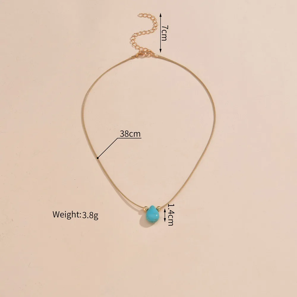 Adjustable Waxed Cord Necklace Natural Turquoise Teardrop Bohemian Tribal Waterproof Design for Men Women 2025 New