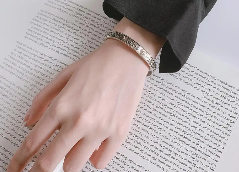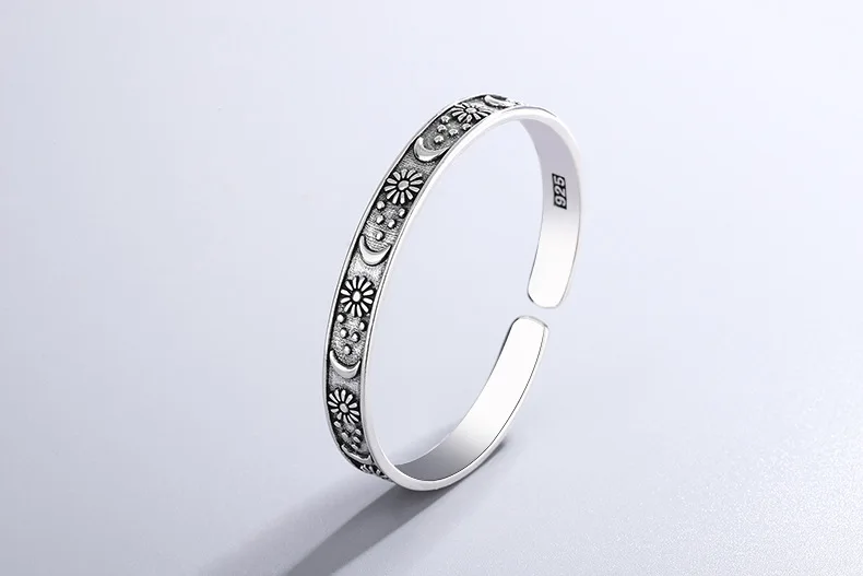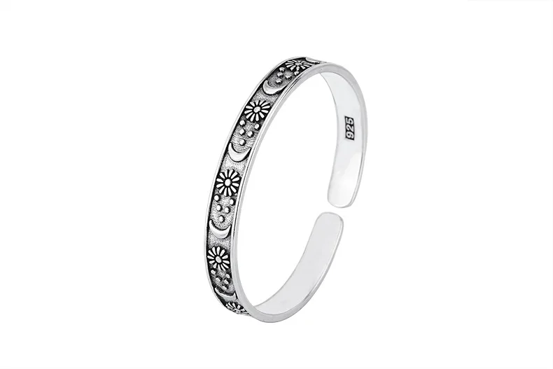 Sole Memory Vintage Thai Silver Moon Star 925 Sterling Silver Resizable Opening Bracelet For Women Luxury Jewelry Gift BR340